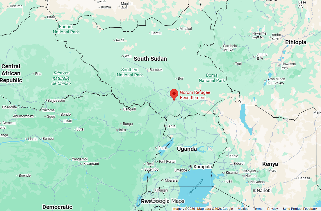 Location of Gorom Refugee Settlement in South Sudan. (Map data © 2026 Google)