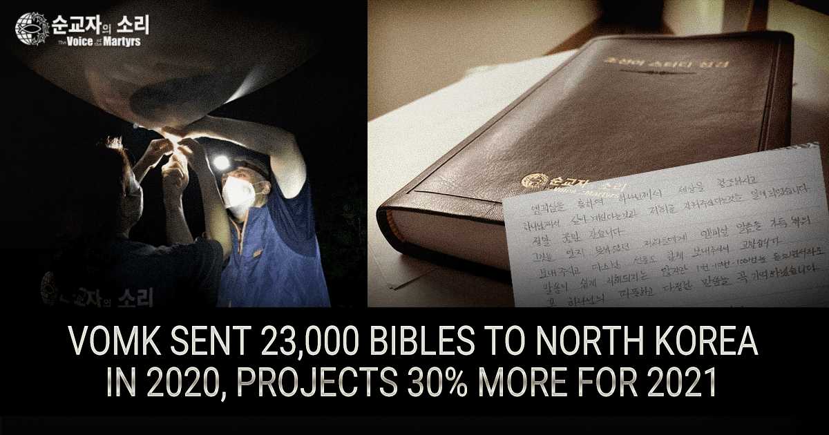 (Voice of the Martyrs Korea) — Voice of the Martyrs Korea announced on Tuesday that it sent a total of 22,847 Bibles to North Korea in 2020, in addition to airing daily Bible recordings on its five shortwave and medium wave broadcasts into North Korea. According to Voice of the Martyrs CEO Dr. Eric Foley, […]