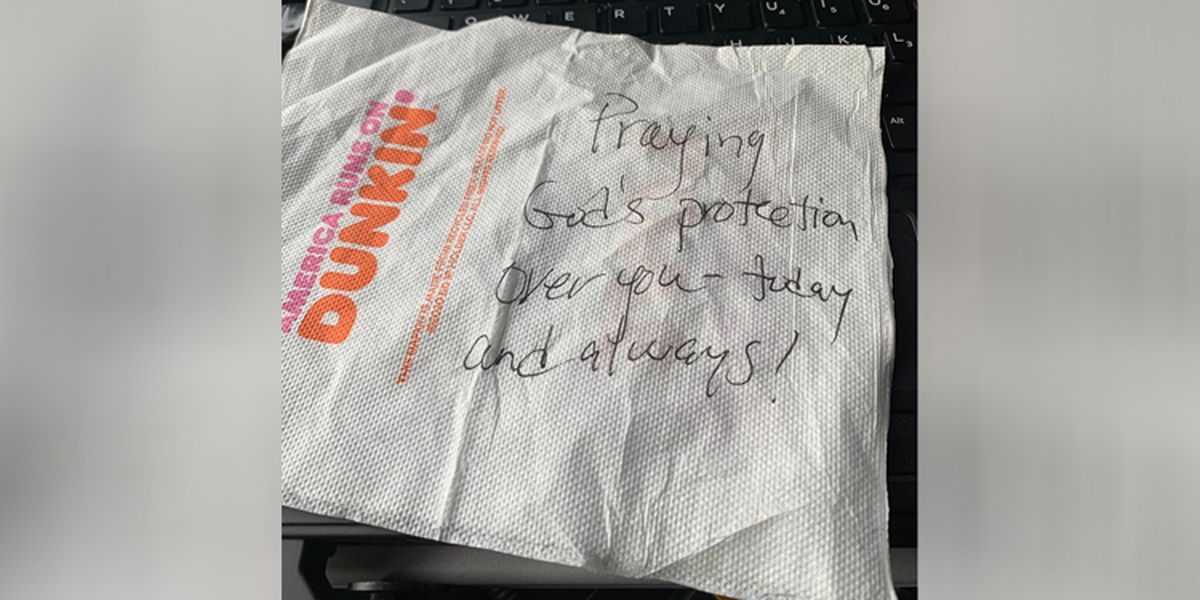 (Christian Headlines) — A kind citizen left an encouraging note on a police officer’s windshield earlier this week in Huntersville, North Carolina. Faithwire shared that after getting coffee at a Dunkin’ Donuts, Officer Aron walked out to his squad car to find a little note written on a Dunkin’ napkin. “Praying God’s protection over you […]